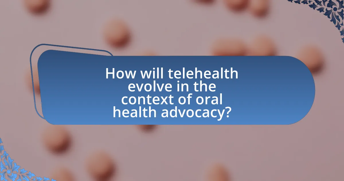 Telehealth will evolve in the context of oral health advocacy by enhancing access to dental care and improving patient education. As technology advances, telehealth platforms will facilitate remote consultations, allowing patients to receive timely advice and treatment recommendations without the need for in-person visits. This shift is supported by the increasing adoption of mobile health applications and virtual care tools, which have shown to improve patient engagement and adherence to oral health practices. For instance, a study published in the Journal of Dental Research indicated that telehealth interventions can significantly increase patient participation in preventive care, leading to better oral health outcomes.
